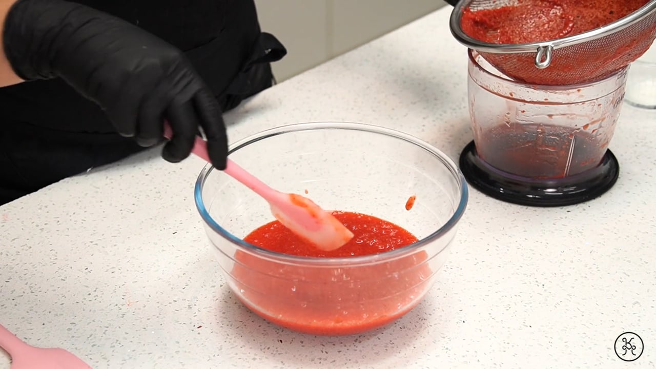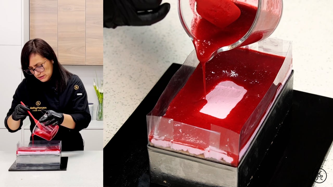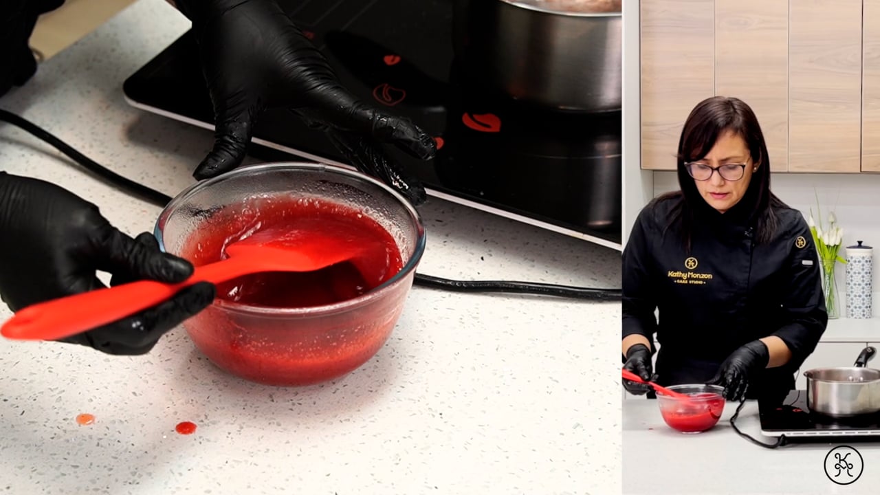 Una capa de fruta con textura gelatinosa que intensifica el color y el sabor.